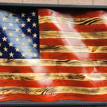 So I wanted to create something that I haven't seen at markets. You'll typically see the regular wooden flags. These vary in a wide range of design. So to set myself apart, I've created my wavy flag style. Used the same process with giving them a torch look and keeping the wood natural for the white strips. If your interested continue on checking the website and order yours today!! And I'll work on creating yours personally!! Also these will be available for the first responder versions as well. I've posted of what mine will look like with the Original wavy American Flag, and a law enforcement style.