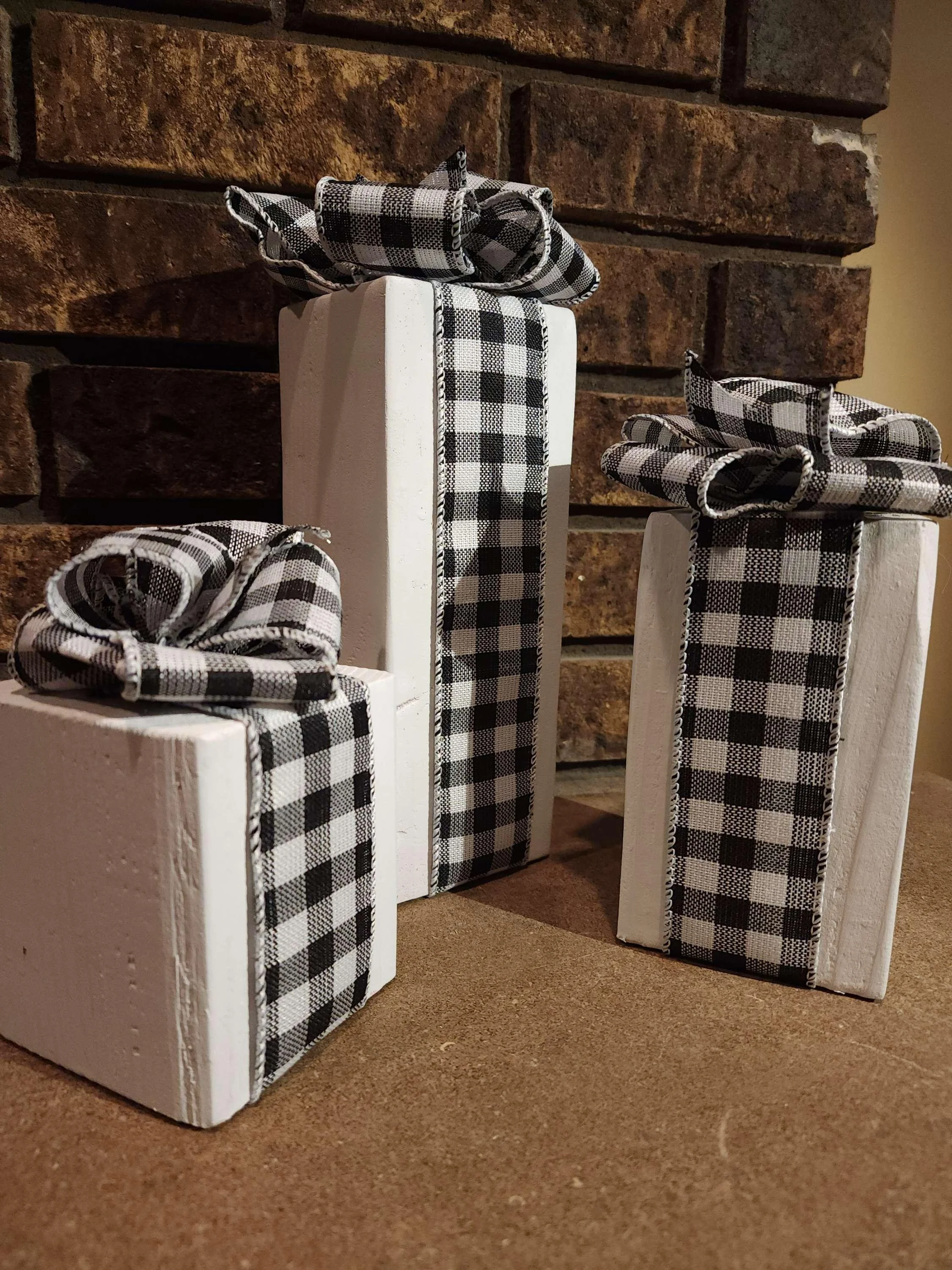 Image 1 of 5 Image 2 of 5 Image 3 of 5 Image 4 of 5 Image 5 of 5 3pc Gift Blocks $25.00 Get festive and decorate your home with these cute 3pc Present Blocks. All Green, Red, White, or assorted. Color: Mixed Green White Red Quantity: Add To Cart Added! Get festive and decorate your home with these cute 3pc Present Blocks. All Green, Red, White, or assorted.