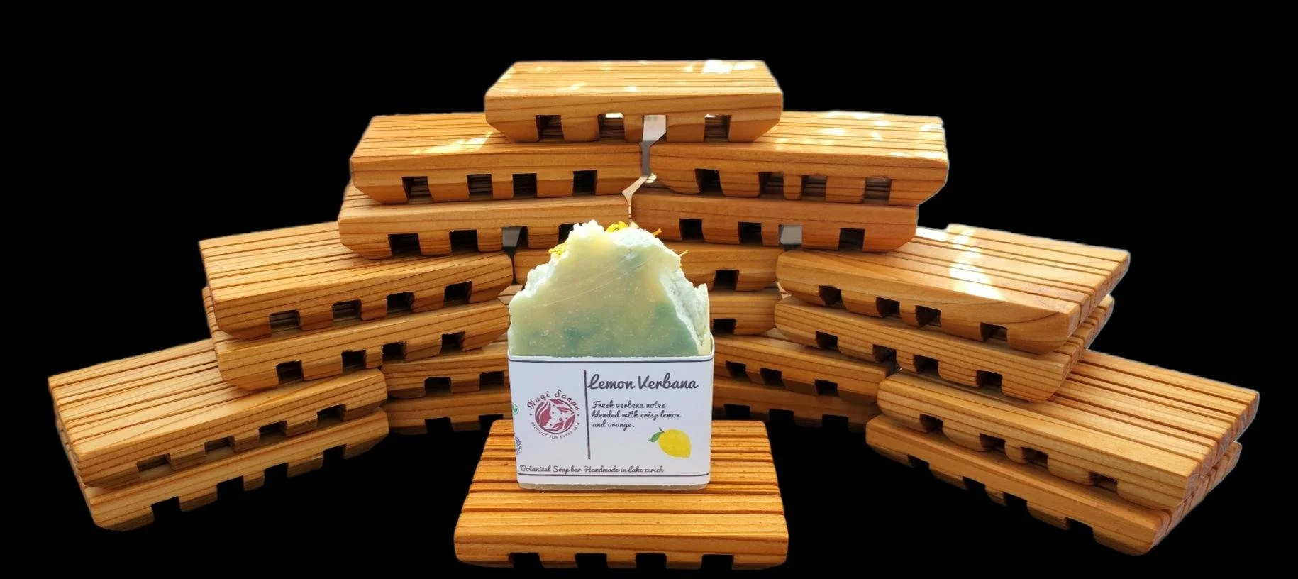 Introducing our exquisite handcrafted cedar soap tray, a true testament to nature's beauty. Each tray, measuring approximately 3"x5", is a unique masterpiece, showcasing the distinct grain patterns of cedar wood. Elevate your daily routine with this functional piece of art, designed to cradle your favorite soap bar in elegance and style. Crafted with care, our cedar soap tray not only adds a touch of rustic charm to your bathroom but also ensures proper drainage, prolonging the life of your soap. Experience the blend of craftsmanship and nature's artistry with every use.