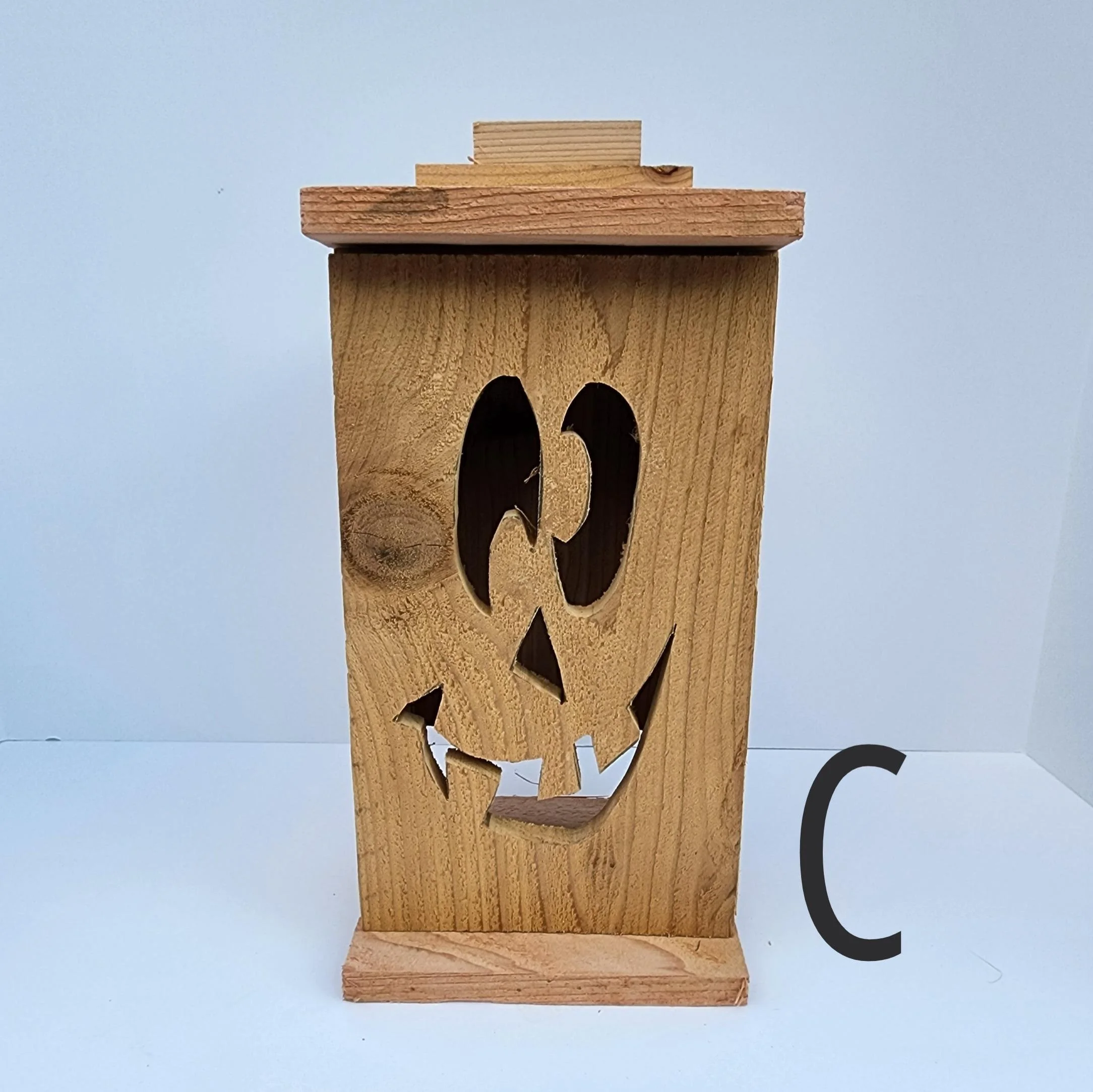 Image 1 of 11 Image 2 of 11 Image 3 of 11 Image 4 of 11 Image 5 of 11 Image 6 of 11 Image 7 of 11 Image 8 of 11 Image 9 of 11 Image 10 of 11 Image 11 of 11 Handcrafted 3PK Cedar Jack O Lanterns $125.00 Handcrafted Cedar Jack O Lanterns. Painted. LED Puck with Remote Included Add To Cart Added! Handcrafted Cedar Jack O Lanterns. Painted. LED Puck with Remote Included