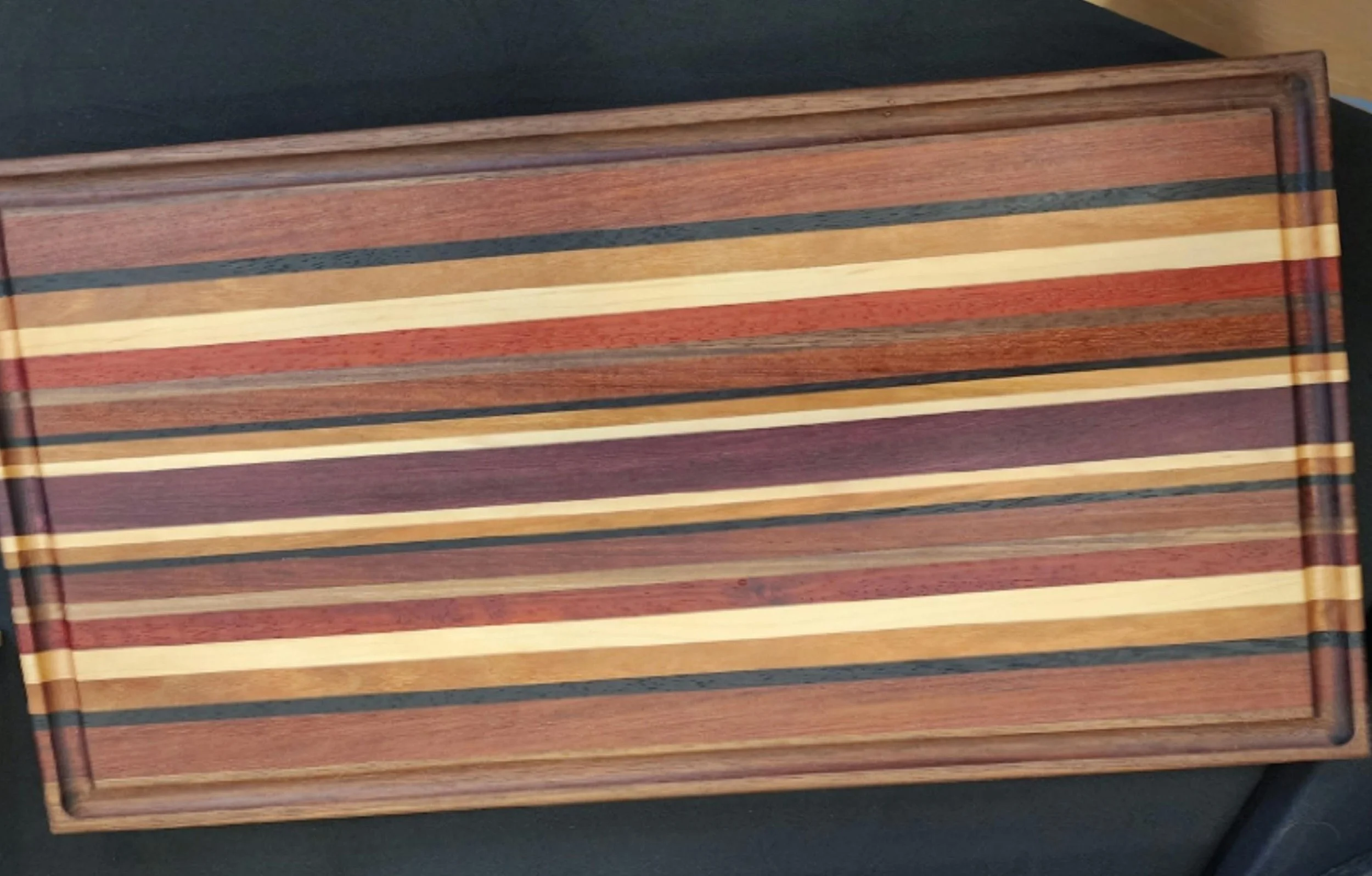 Image 1 of 2 Image 2 of 2 Handcrafted Cutting Boards 23"×11"×1 1/2" $300.00 Handcrafted Cutting Board From the following: Purpleheart, Wenge, Padauk, Cherry, Maple, Walnut Add To Cart Added! Handcrafted Cutting Board From the following: Purpleheart, Wenge, Padauk, Cherry, Maple, Walnut