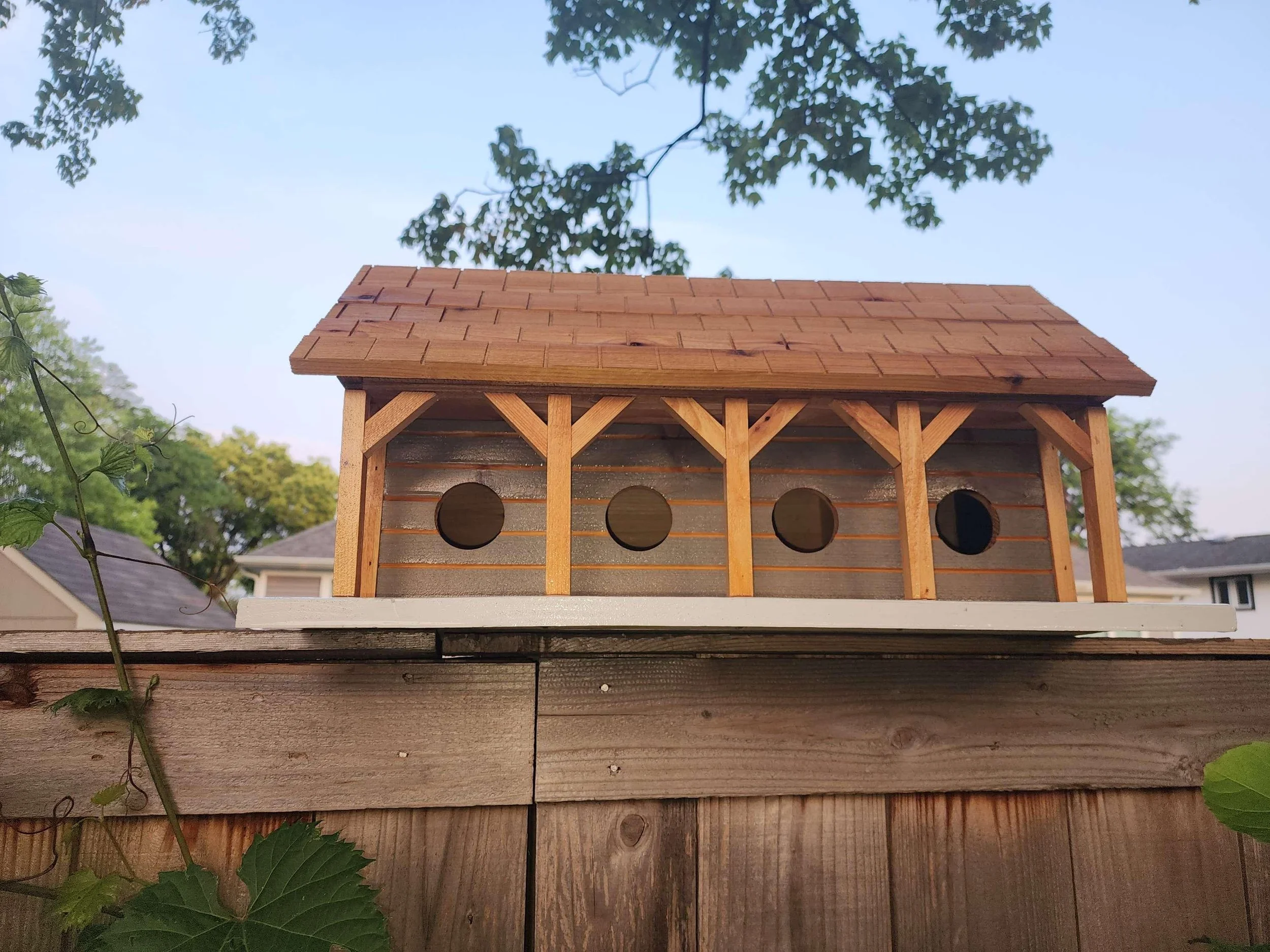 To further enhance its aesthetic appeal, the "Martin" Birdhouse features cedar posts that beautifully complement the overall design. The rich, natural hues of the wood infuse a touch of organic elegance, creating an eye-catching focal point in your outdoor space.