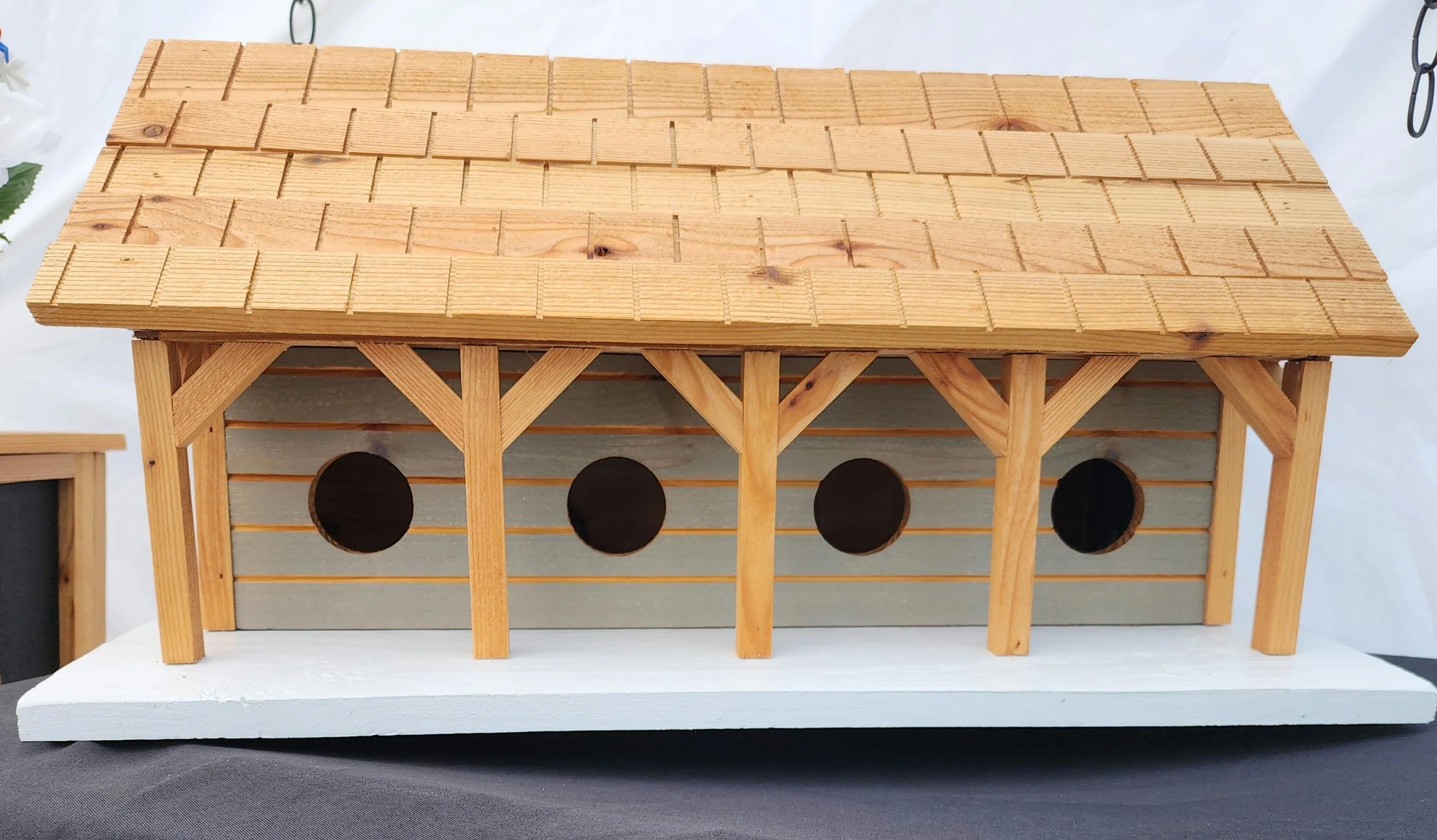 The natural cedar roof of the birdhouse not only adds a touch of warmth but also offers excellent protection against the elements. Its sturdy construction ensures durability, ensuring that your avian visitors have a safe haven season after season.