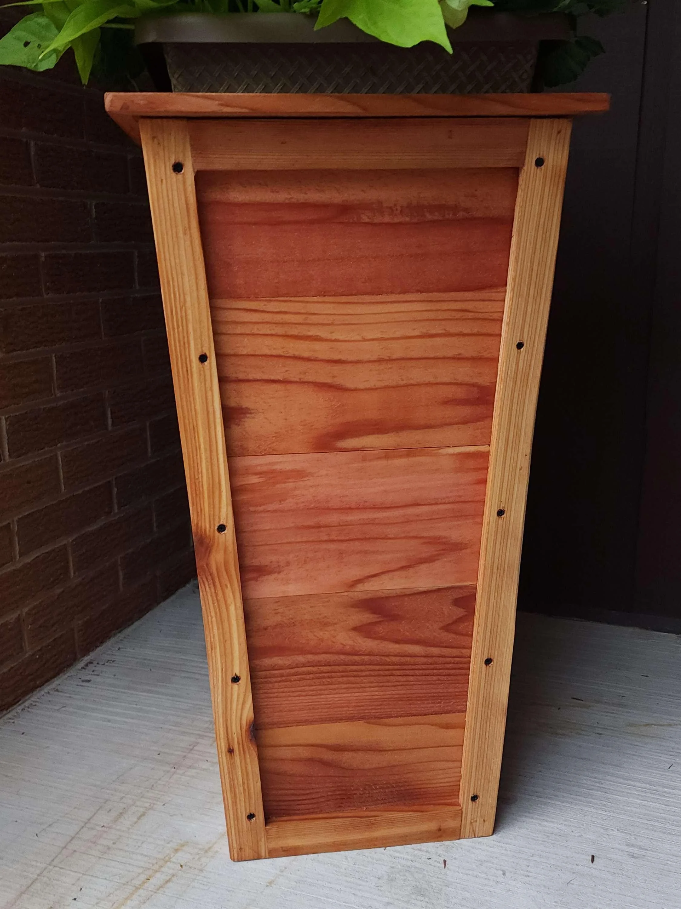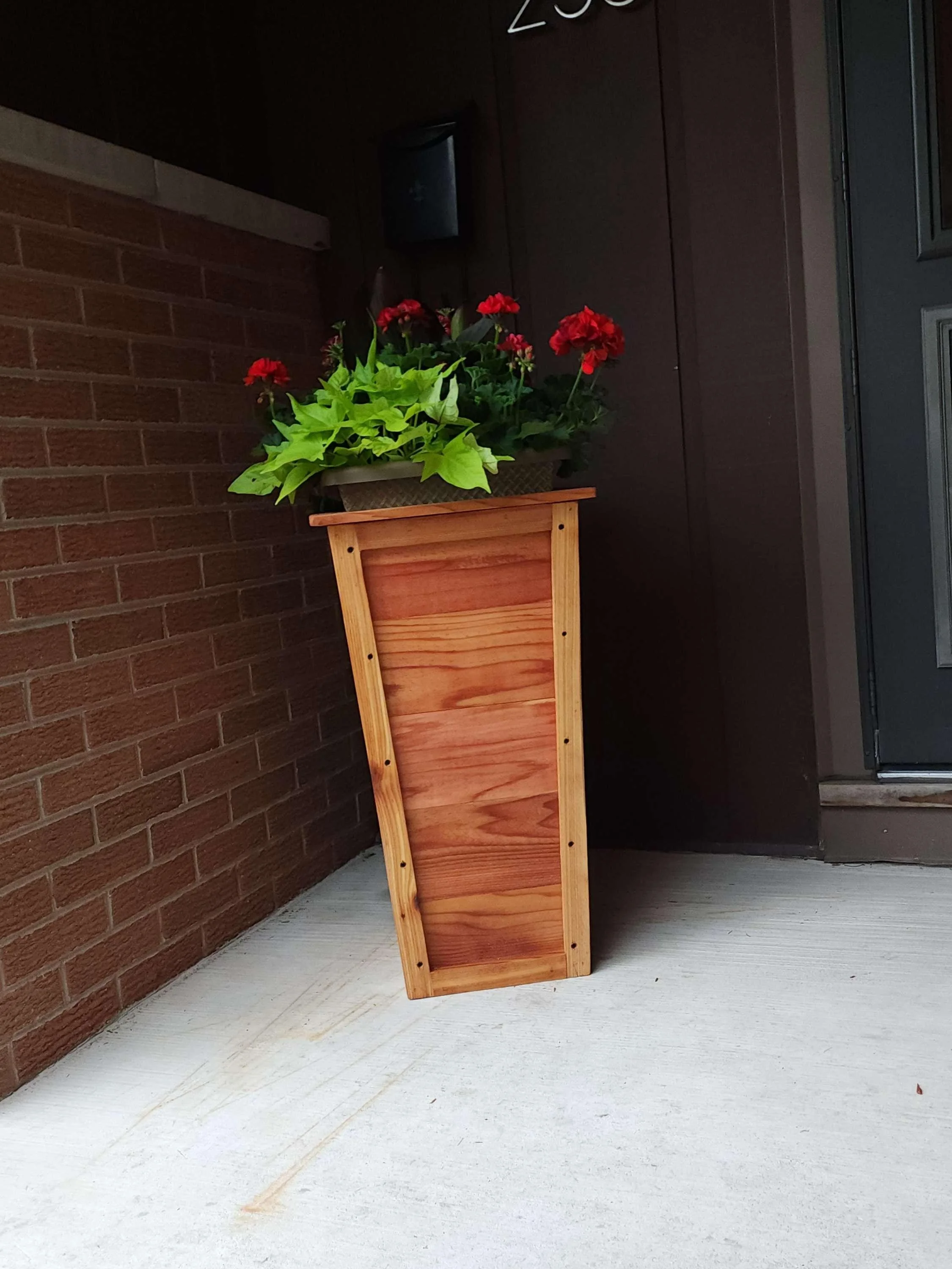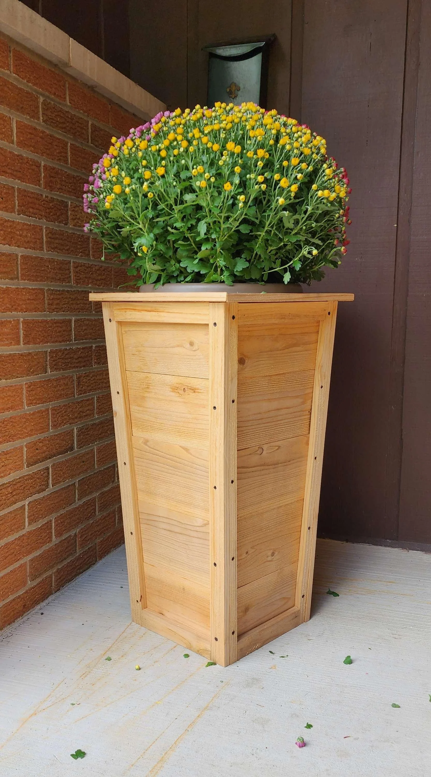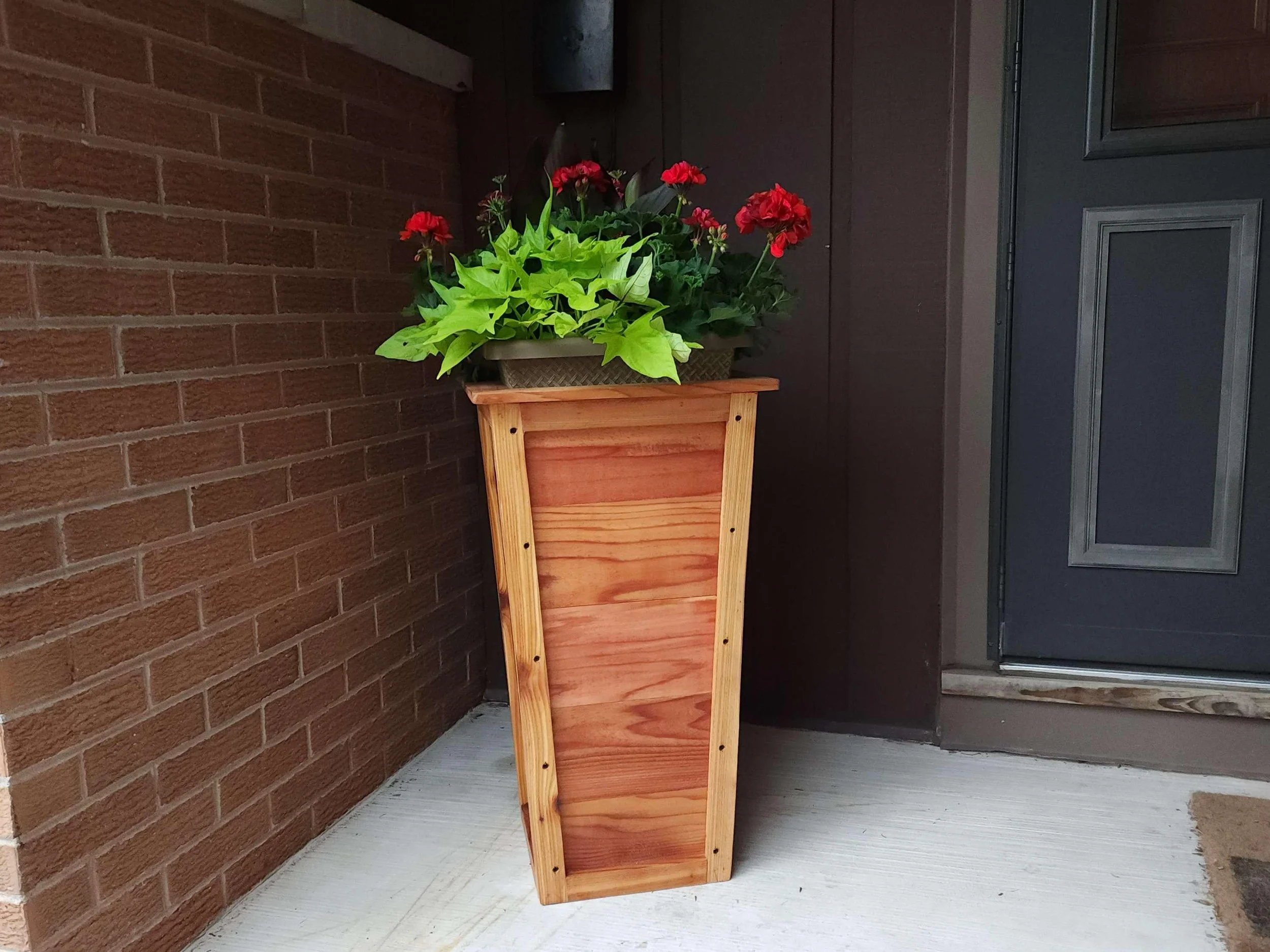 Introducing our Handcrafted Cedar Planter Box, a stunning addition to your garden or patio. With dimensions of H 28" and a top measurement of W 15 3/8" × L 15 3/8", it offers ample space for thriving plants. The two-tone design combines black and natural cedar, creating a visually striking aesthetic. Sealed for added protection, it preserves colors longer and ensures durability against the elements. Meticulously crafted with attention to detail, it showcases exceptional quality. Elevate your outdoor space with this functional and elegant planter box, adding sophistication to your garden or patio.
