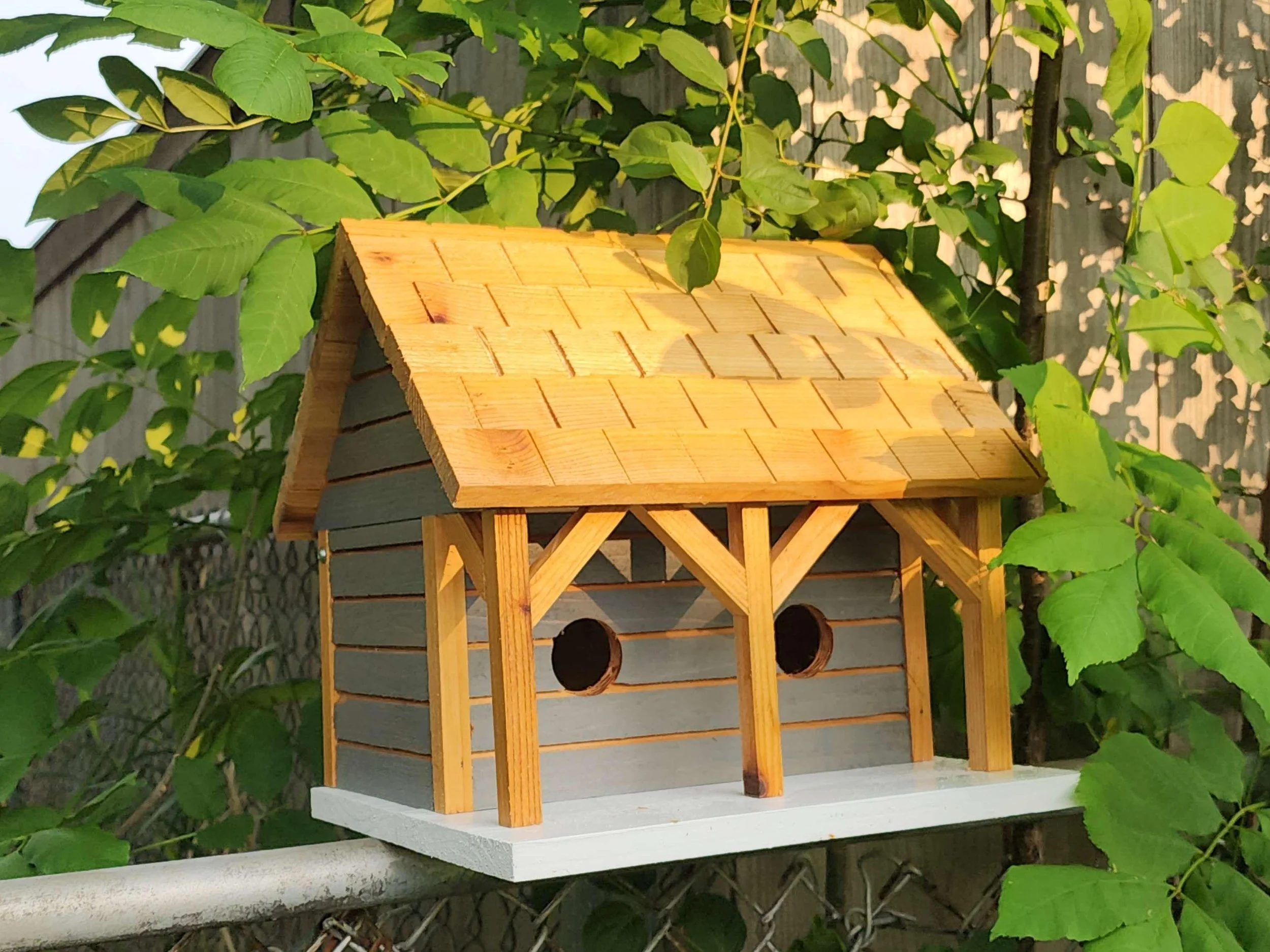 The natural cedar roof of the birdhouse not only adds a touch of warmth but also offers excellent protection against the elements. Its sturdy construction ensures durability, ensuring that your avian visitors have a safe haven season after season.