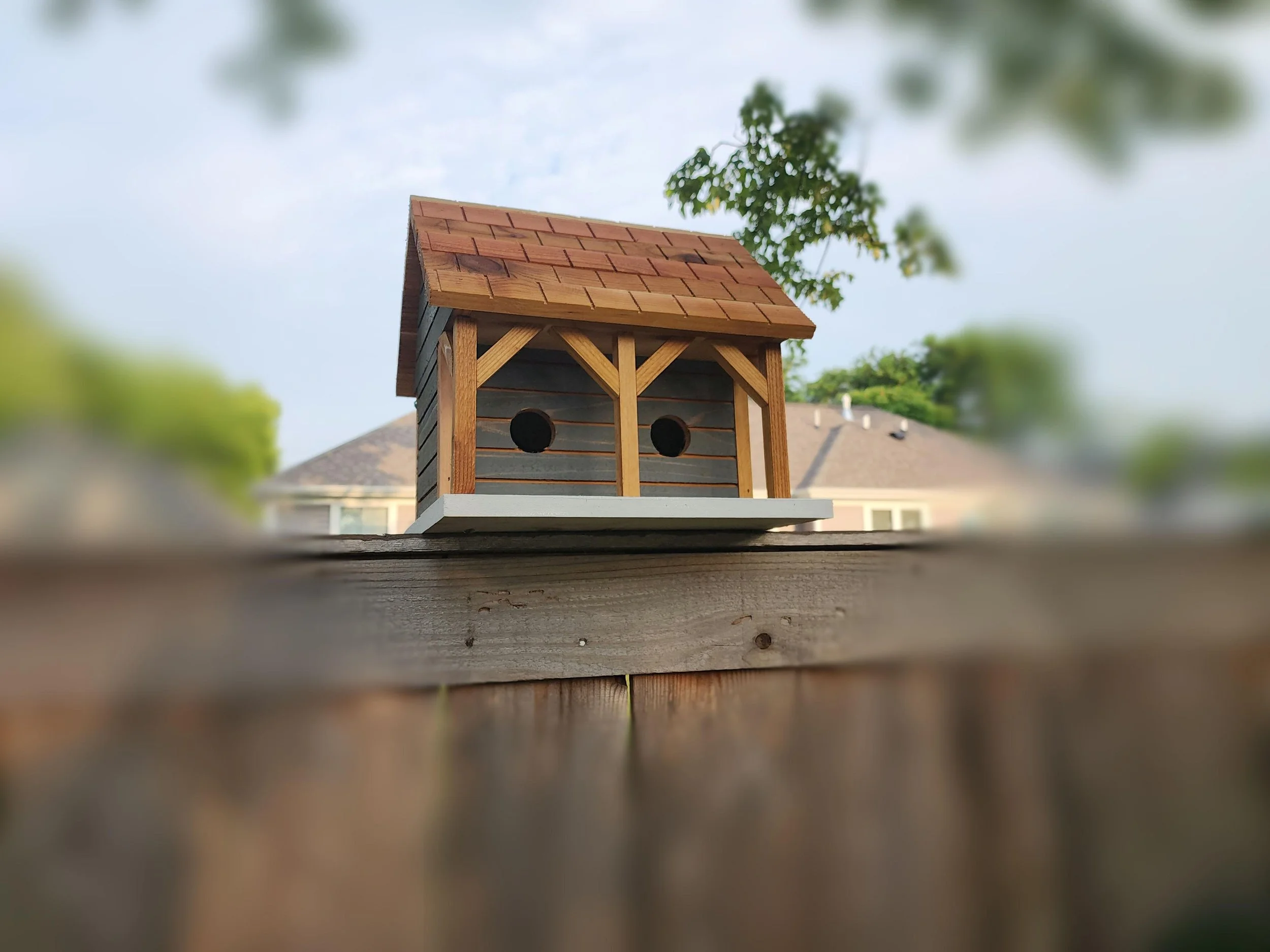 Introducing the exquisite "Martini" Birdhouse, the little cousin of the Martin Birdhouse, a harmonious blend of rustic charm and contemporary elegance. Crafted with utmost care from premium cedar wood, this birdhouse is designed to provide a comfortable and inviting abode for our feathered friends.